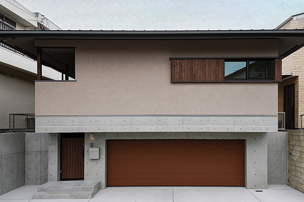 高低差約2mという敷地の個性を活かして地下ガレージを設計しました。
