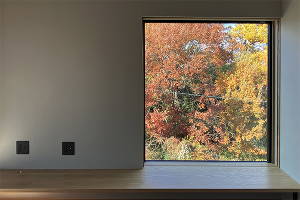 その美しい景観を暮らしのなかにとり込むため、「借景の窓」を設えました。