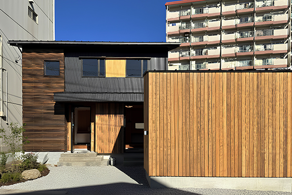 大工ならではの木を活かした印象的なファサードが目を惹きます。