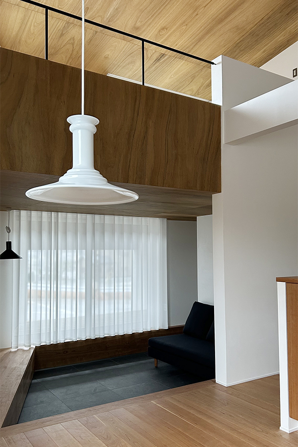 1階はタイル仕上げのダウンフロアで落ち着きを、2階には眺望を愉しむセカンドリビングを設けました。