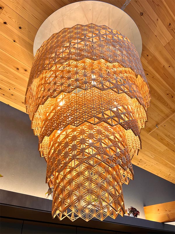 組子を用いたテーブルランプやペンダントライトも製作されており、組子が身近な存在に感じられればとても良いことだと思います。
