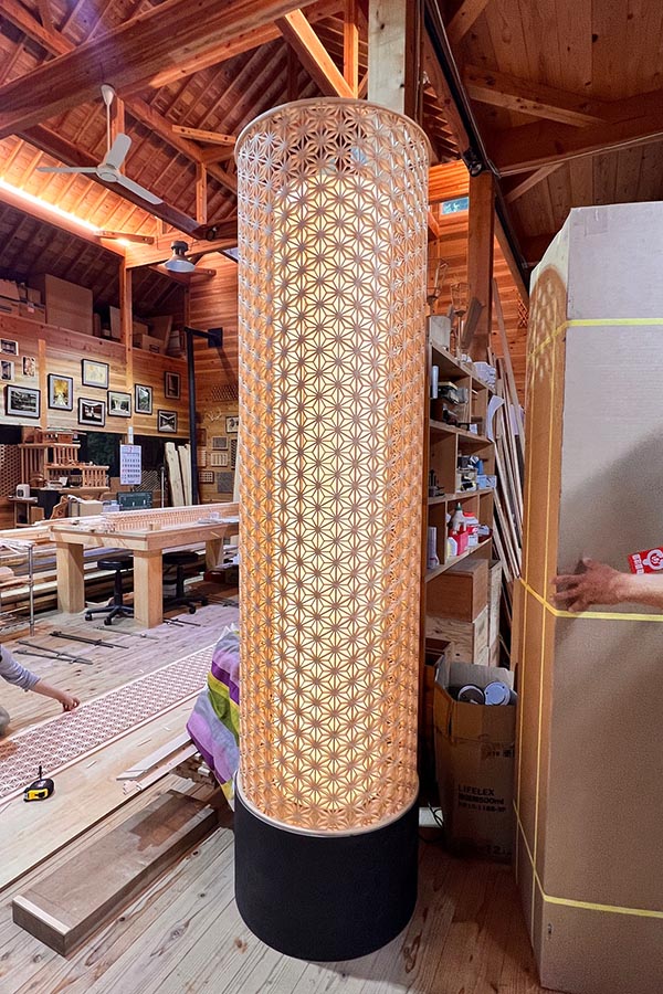 大きな筒状に組み上げられた組子や、立体的な造形の組子も製作されており、伝統木工技術を継承しつつ新しい技術に挑む姿は素晴らしいものでした。