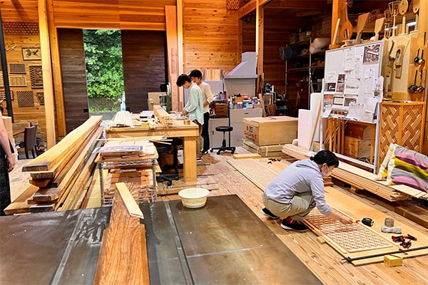 実際に作業場で組子を制作しているのは年配の職人さんかと思いきや、かなり若い職人さんと技能実習生の方たち。