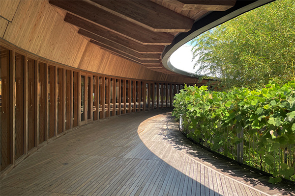 正門からエントランスまでのアプローチでは、山から川、そして海辺へと移りゆくように、高知の豊かな植物を体感できます。
