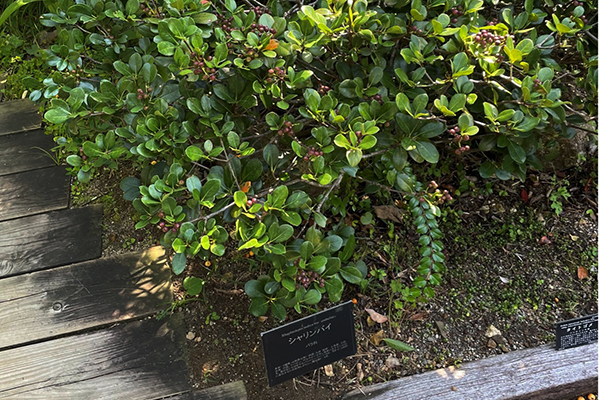 厚みのある丸い葉がかわいらしく、ブルーベリーのような実をたくさんつけていた姿が印象的でした。