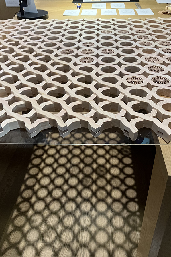 仕事柄、組子細工ならときたま見かけるのですが、他の国のテイストが加わっていることはとても珍しく、思わず見入ってしまいました。