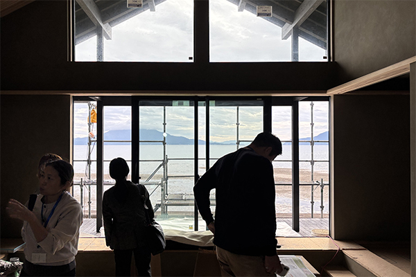 棚田の地形を活かし、海へ向かって床が下がっていく設計になっており、周囲の自然との一体感が感じられました。
