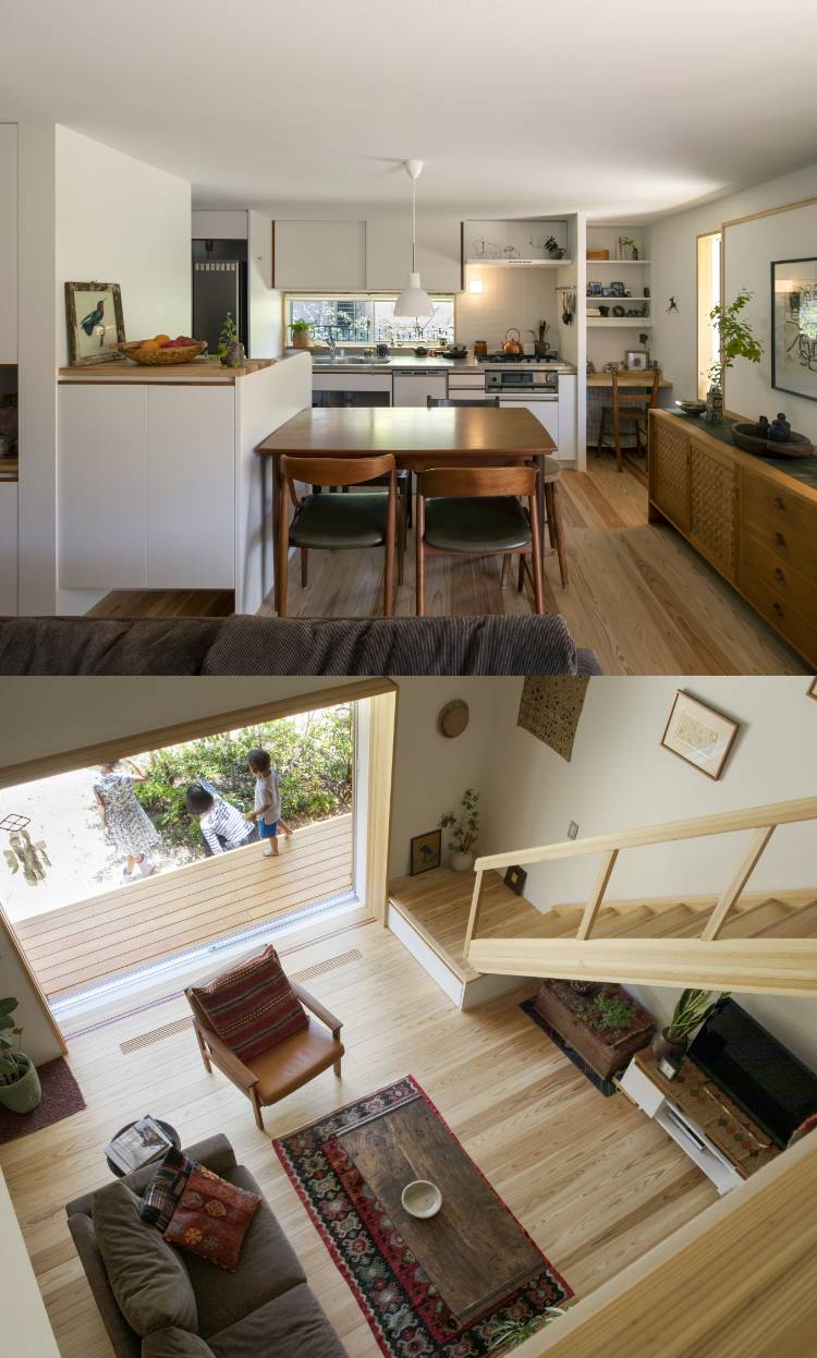 吹抜け階段から光と風が行き交う、表情豊かな3階建ての家