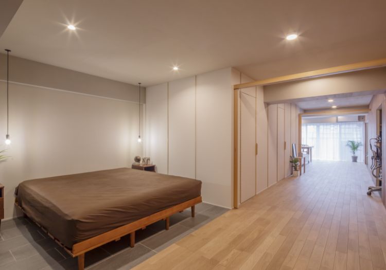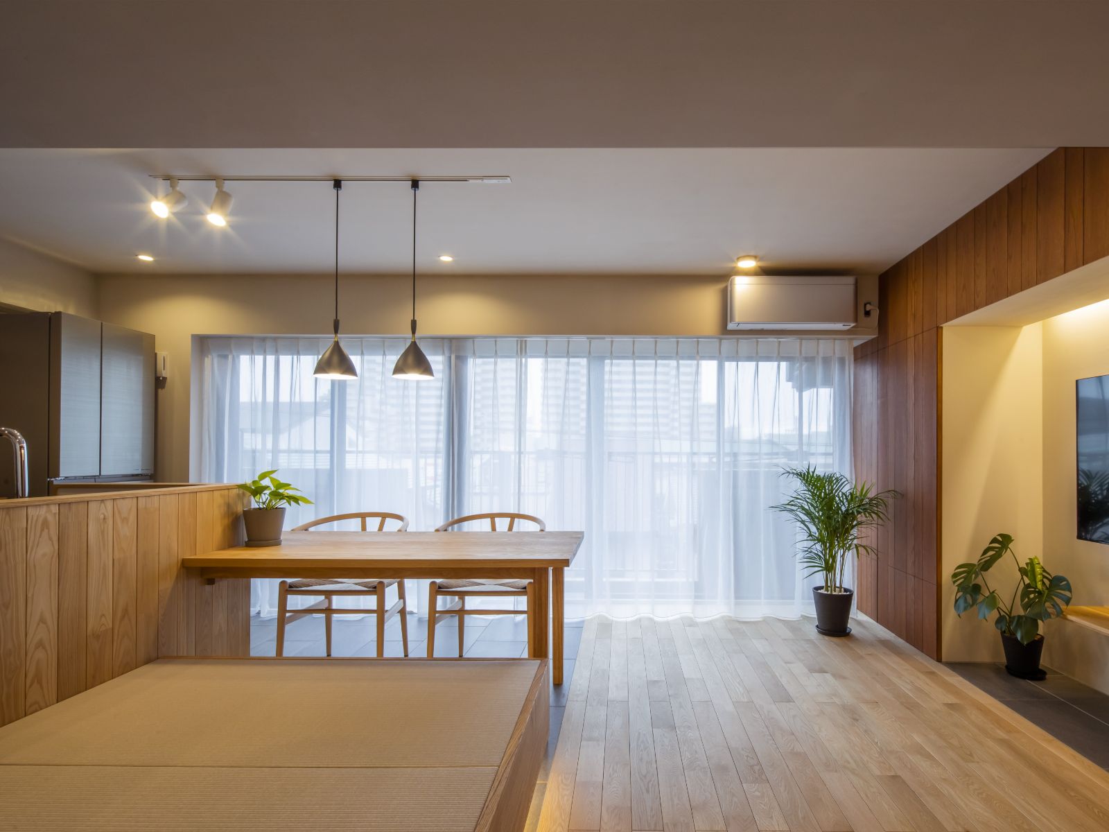 各居室が壁で仕切られ、光と風が分断されがちな間取りを、フルオーダーのリノベーションによって室内環境を高めました。マンションでの快適な暮らし、上質な空間を追求しています。